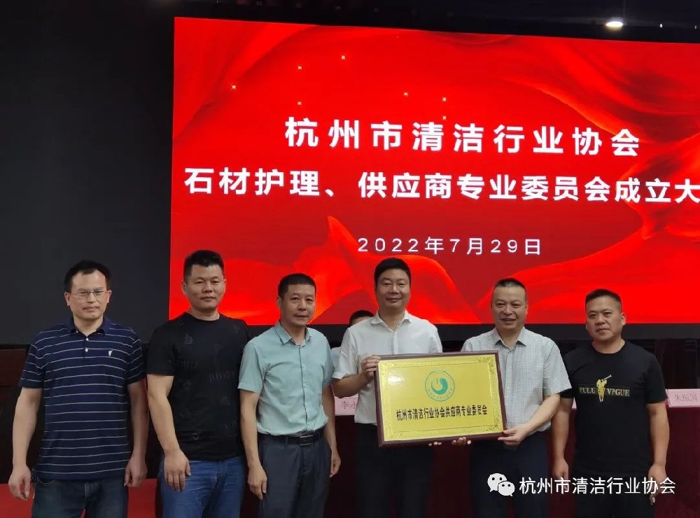 2022年7月29日下午,杭州市清洁行业协会成立了石材护理专业委员会和供应商专业委员会。