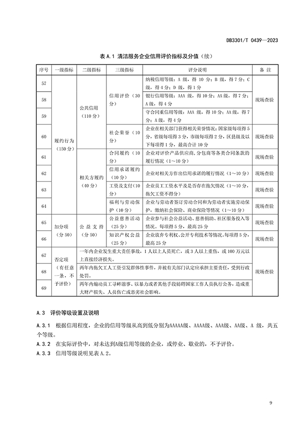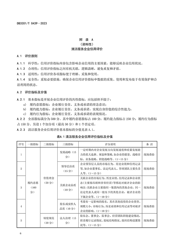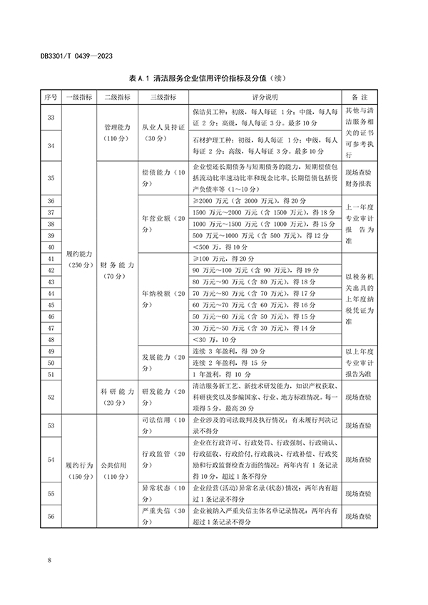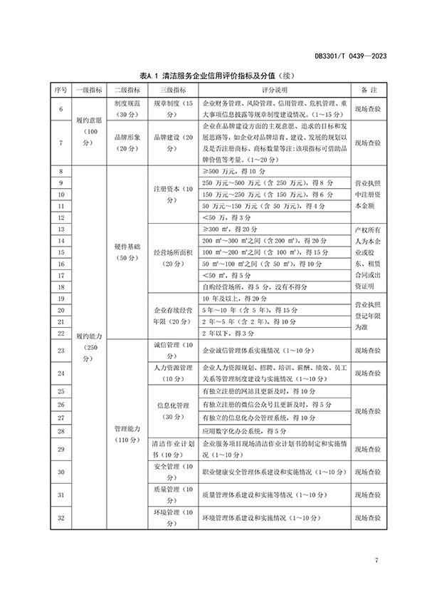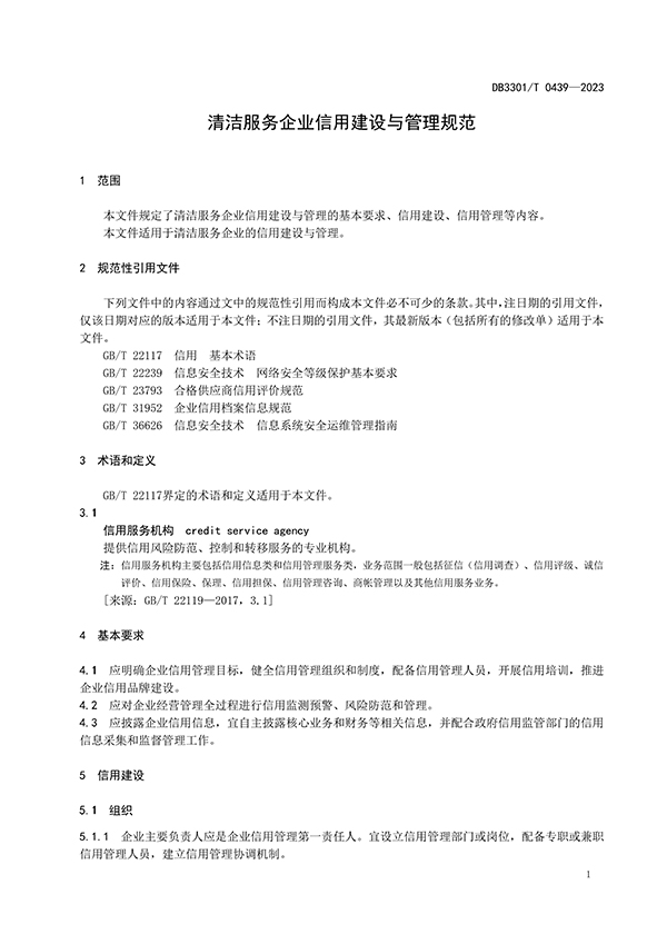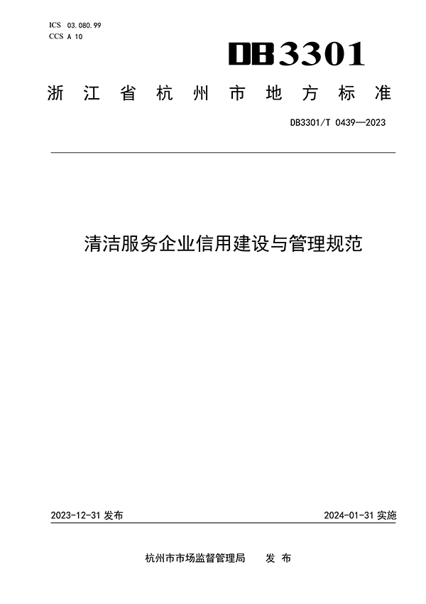 DB3301T 0439—2023 清洁服务企业信用建设与管理规范